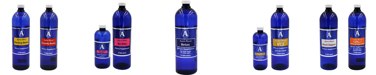 These are specialized blends containing more than one liquid mineral. A solution for many users, these combined mineral blends are generally used for easier consumption and to resolve specific body mineral deficiencies.